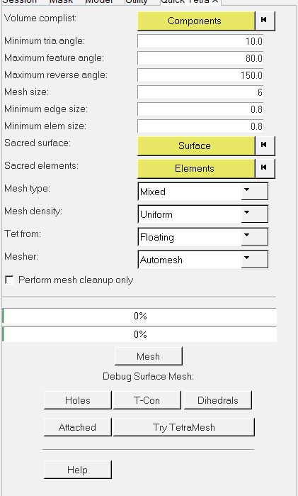 5.A new sub panel opens for the quick mesh to input the parameters.