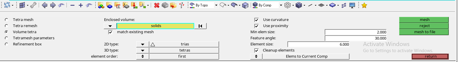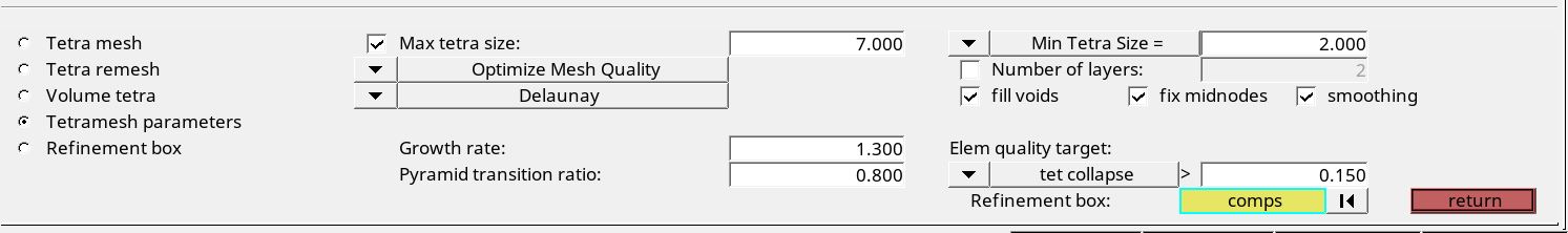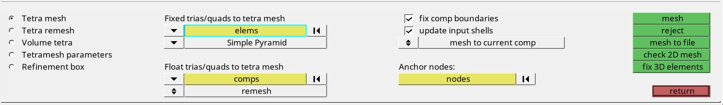 After the shell mesh is performed they need to be converted into solid tria elements. So select 3D> tetramesh option
