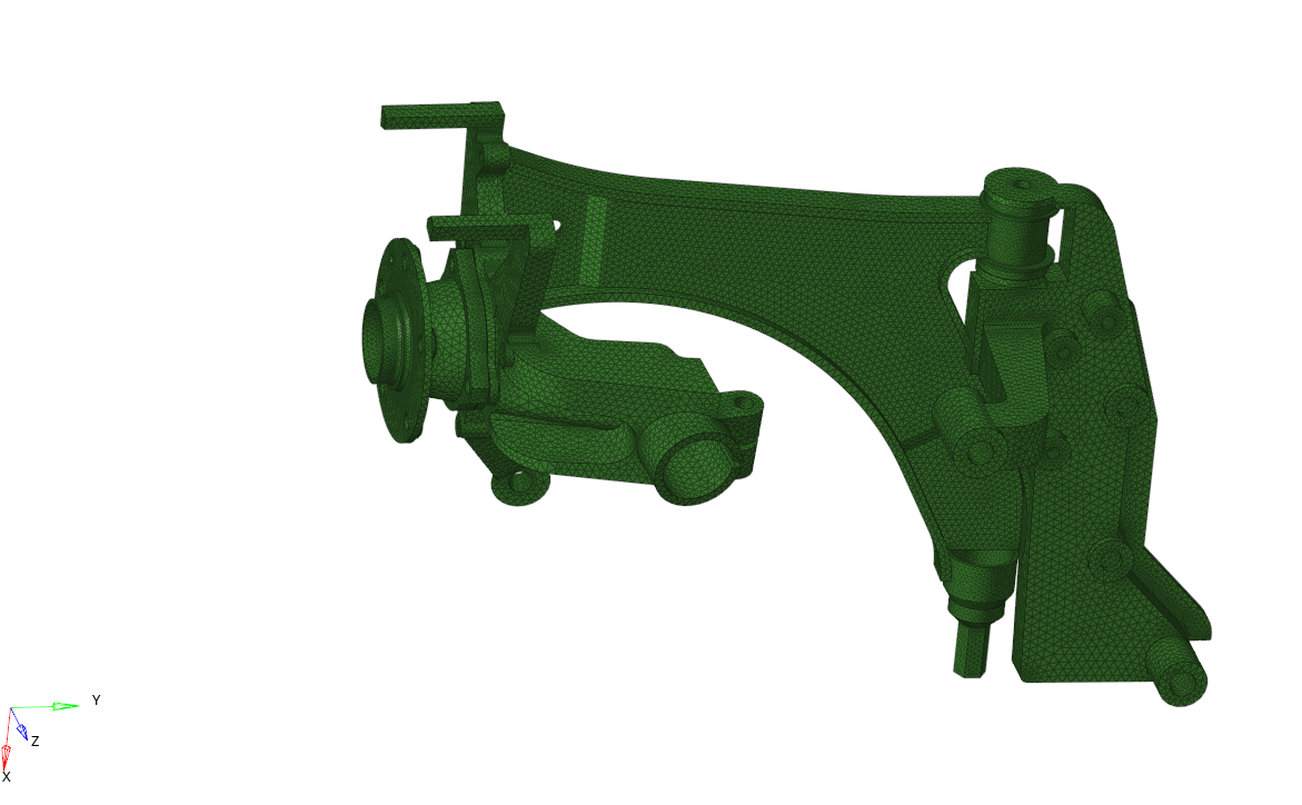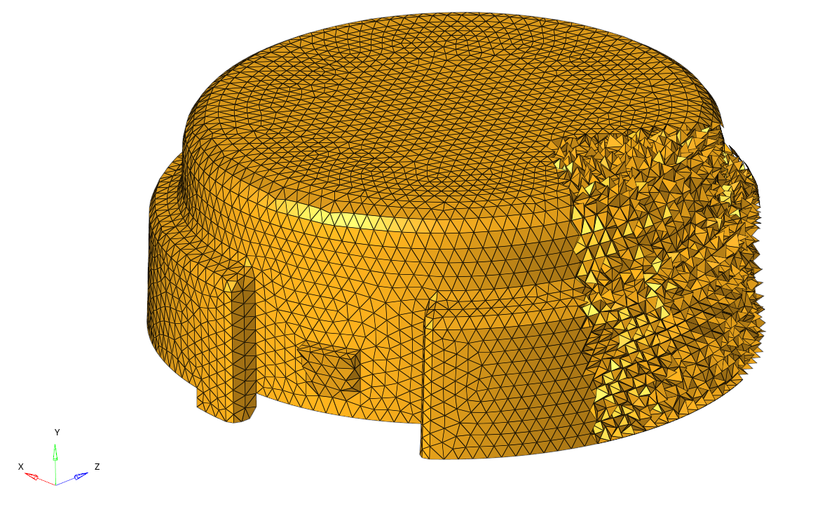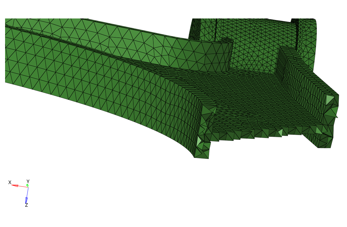 This is the most commonly used method. Quad or tria meshing is carried out on all the outer surfaces of the geometry. During the tetra meshing the quads are automatically split into trias which then serve as the “basis” of the tetra elements.